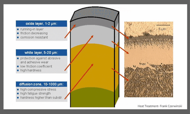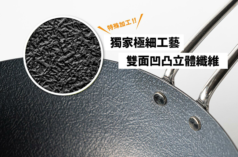 窒化處理技術一般用在航空零件上,達到堅固又防鏽的效果。在熟鐵鍋上,將氮原子滲透到的鐵原子晶格內部,在表面形成「氮化鐵層」。整個工藝不涉及到重金屬和其他物質,對人體健康安全無虞。