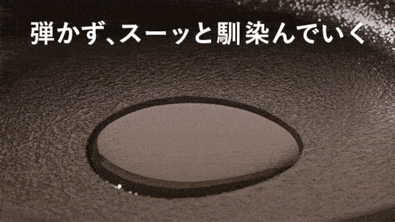 倒入的油不會集中在一起,而是毛細現象般,慢慢被吸收擴散開來。