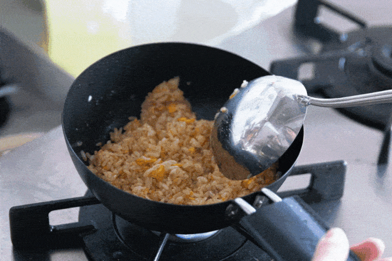 apod迷你中華鐵鍋,經過凹凸立體纖維加工,讓簡單炒飯也美味大升級。顆粒分明不油膩,更容易大火翻炒出鍋氣、鎖住米粒水份的Q彈口感!居家小型瓦斯爐、IH爐就能辦到。