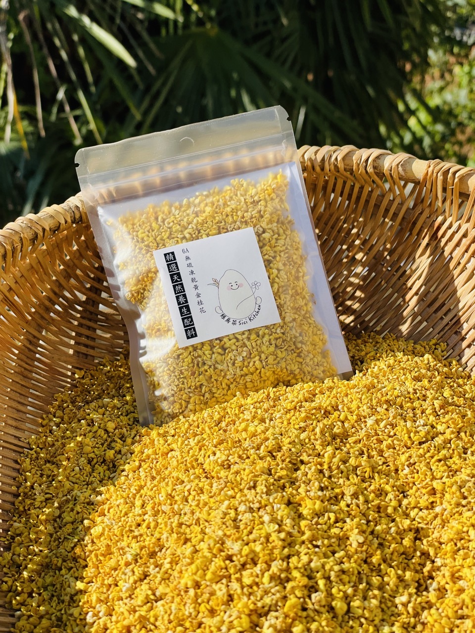 🌼🌼 同時,凍乾桂花技術再加上低溫處理,將桂花最原始的色,香,味凍封。再將顏色深,不美觀的逐一揀走,只留下純金黃色,朵朵飽滿的桂花。10斤鮮花才成1斤凍乾桂花,所以十分之珍貴,而且營養價值保留得最好。