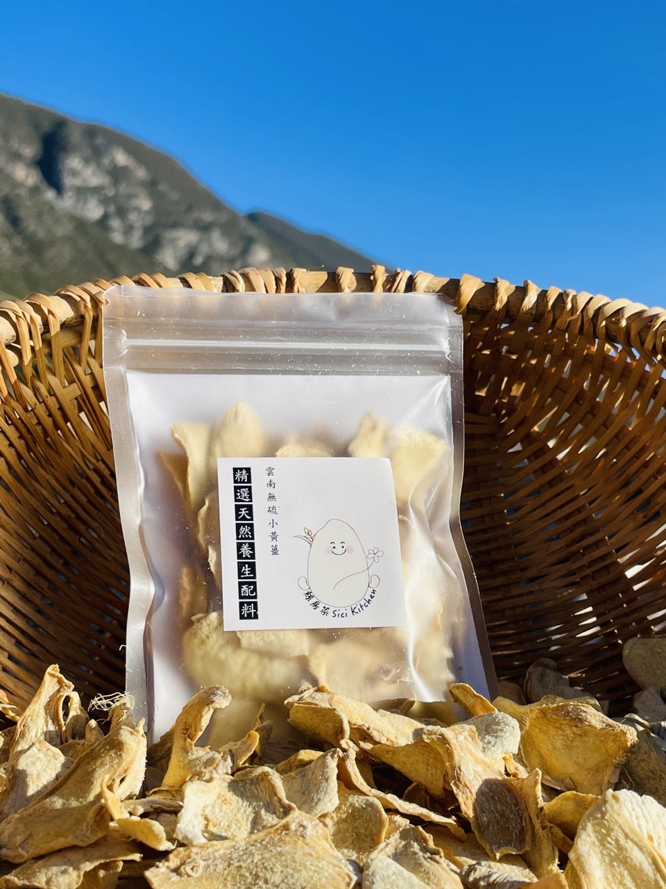 我們的小黃薑同樣使用傳統方式種植,專業企業加工,做到不熏硫和無農殘。小黃薑在採摘後會第一時間清洗乾淨和 切片烘乾,是新鮮度好,完整度高的最高級別薑片。