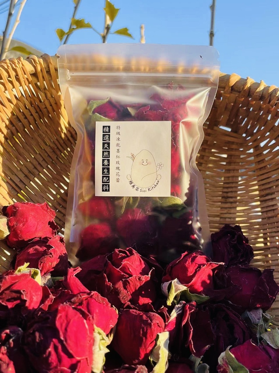 【特級凍乾墨紅玫瑰花蕾】建議食法: